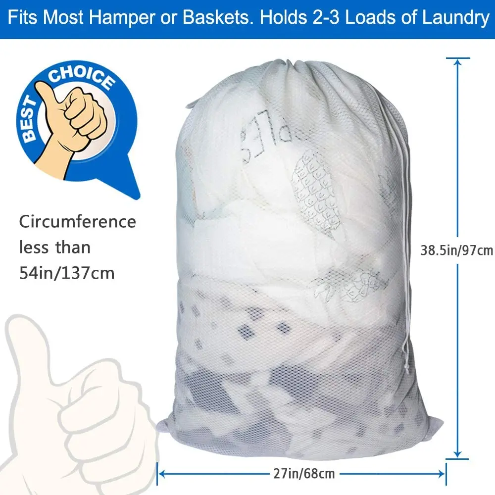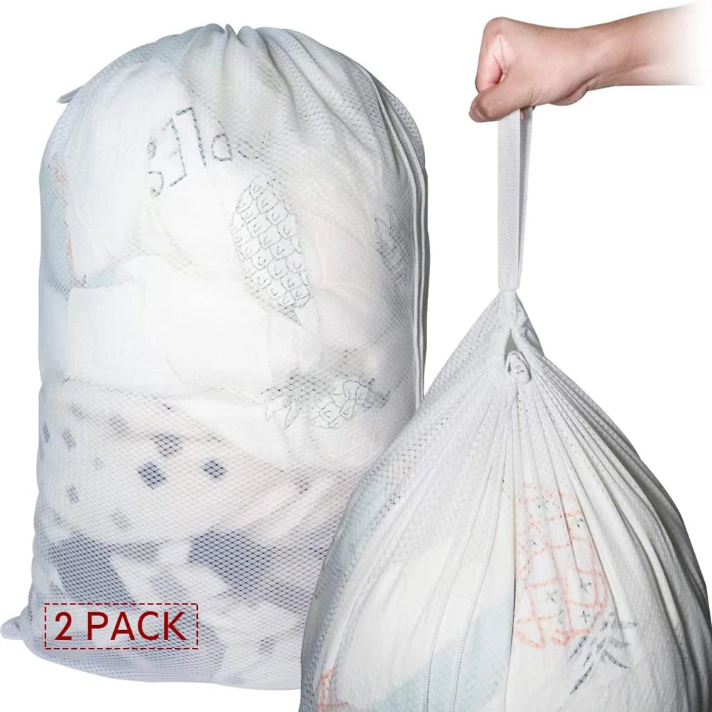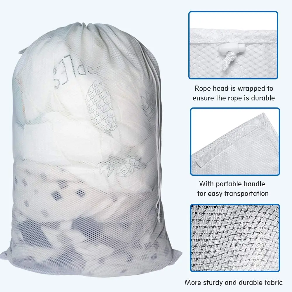 Top Seller Large Mesh Laundry Wash Bags with Handle Travel Net Laundry Bags Machine Washable Sturdy Rip-Stop delicates Breathable Material