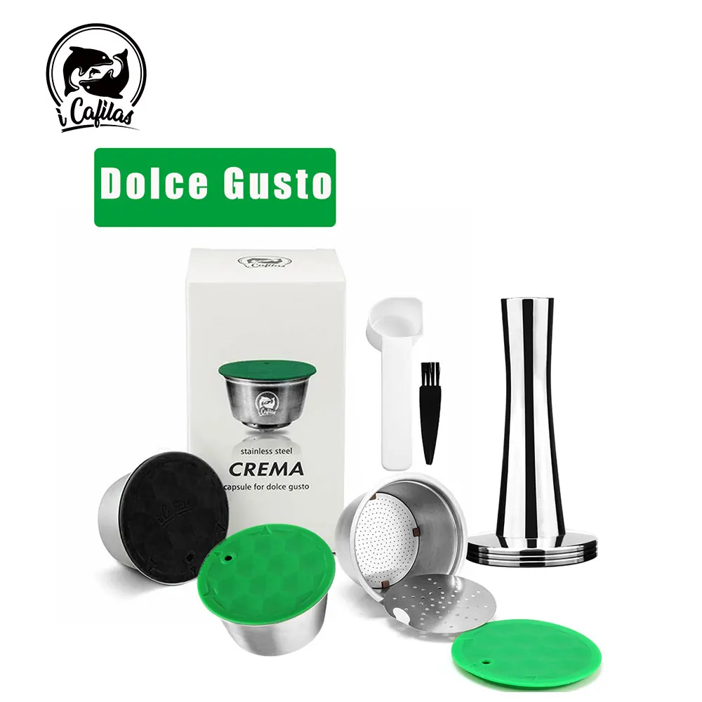 Best Price iCafilas Reusable Refillable Capsule for Nescafe Dolce Gusto Coffee Capsule with Lid Stainless Metal Filters Cup Tamper Spoon