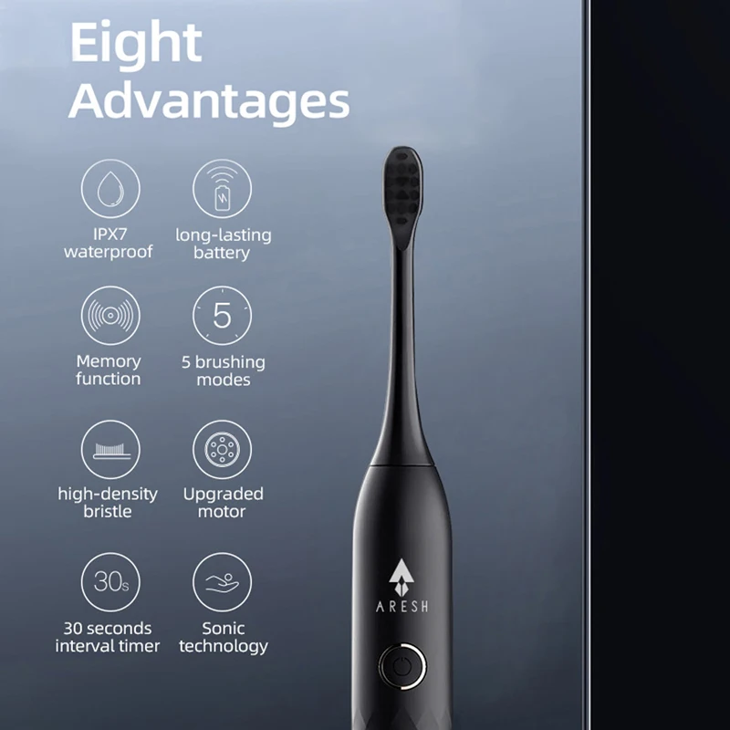 Thanks for reading New Arrival Black Business Electric Toothbrush ARESH L1 Smart Rechargeable Sonic Toothbrush 5 Mode Adult IPX7 Automatic Ultrasonic Brush. Please share...!