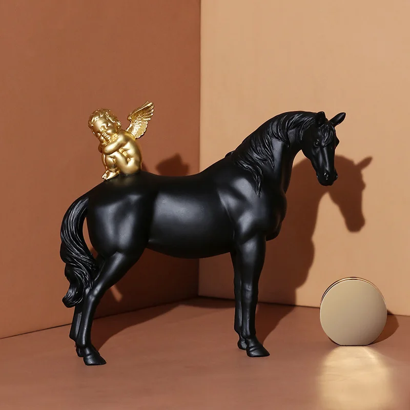 Hot Product Nordic Angel Riding Horse Sculpture Angel Horse Statue Resin Crafts Figurines Home Decoration Weddi
